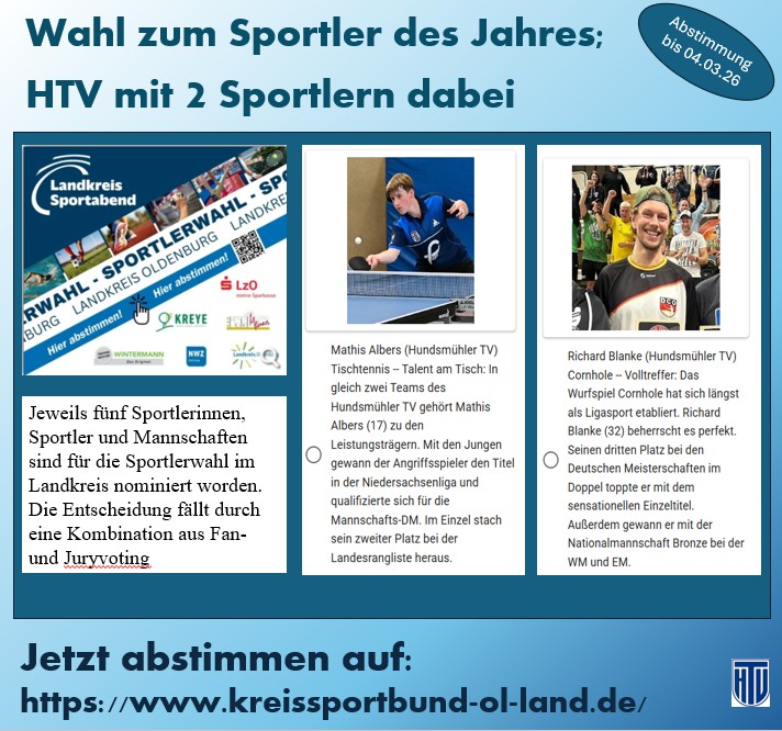 Vom HTV wurden 2 Sportler nominiert. Helft uns und stimmt für Mathis oder Richard ab.