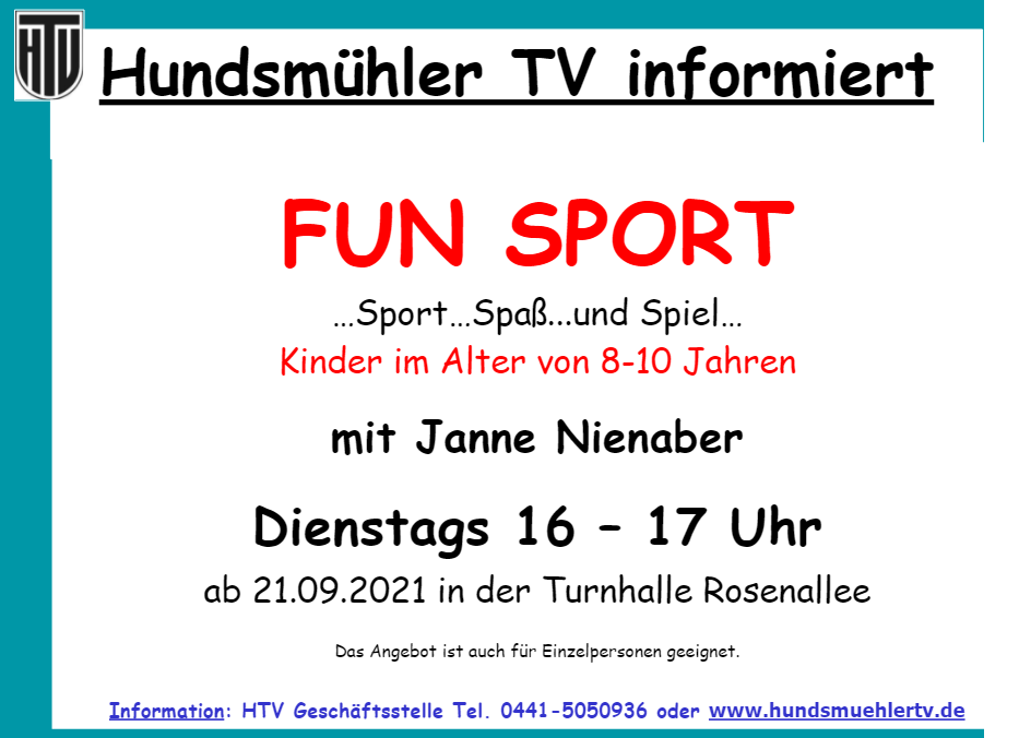 Janne Nienaber leistet ja beim HTV seinen Bundes Freiwilligen Dienst (BFD) ab. Jetzt startet er am Dienstag, den 21. September mit einem neuen Sportangebot für Kinder von 8 - 10 Jahren in der Turnhalle Rosenallee. Ab 16 Uhr möchte er natürlich Sport, aber auch Spaß und Spiel dabei für eine Stunde in den Vordergrund stellen. Die Kinder können ohne Anmeldung kommen, auch Einzelpersonen sind herzlich willkommen!