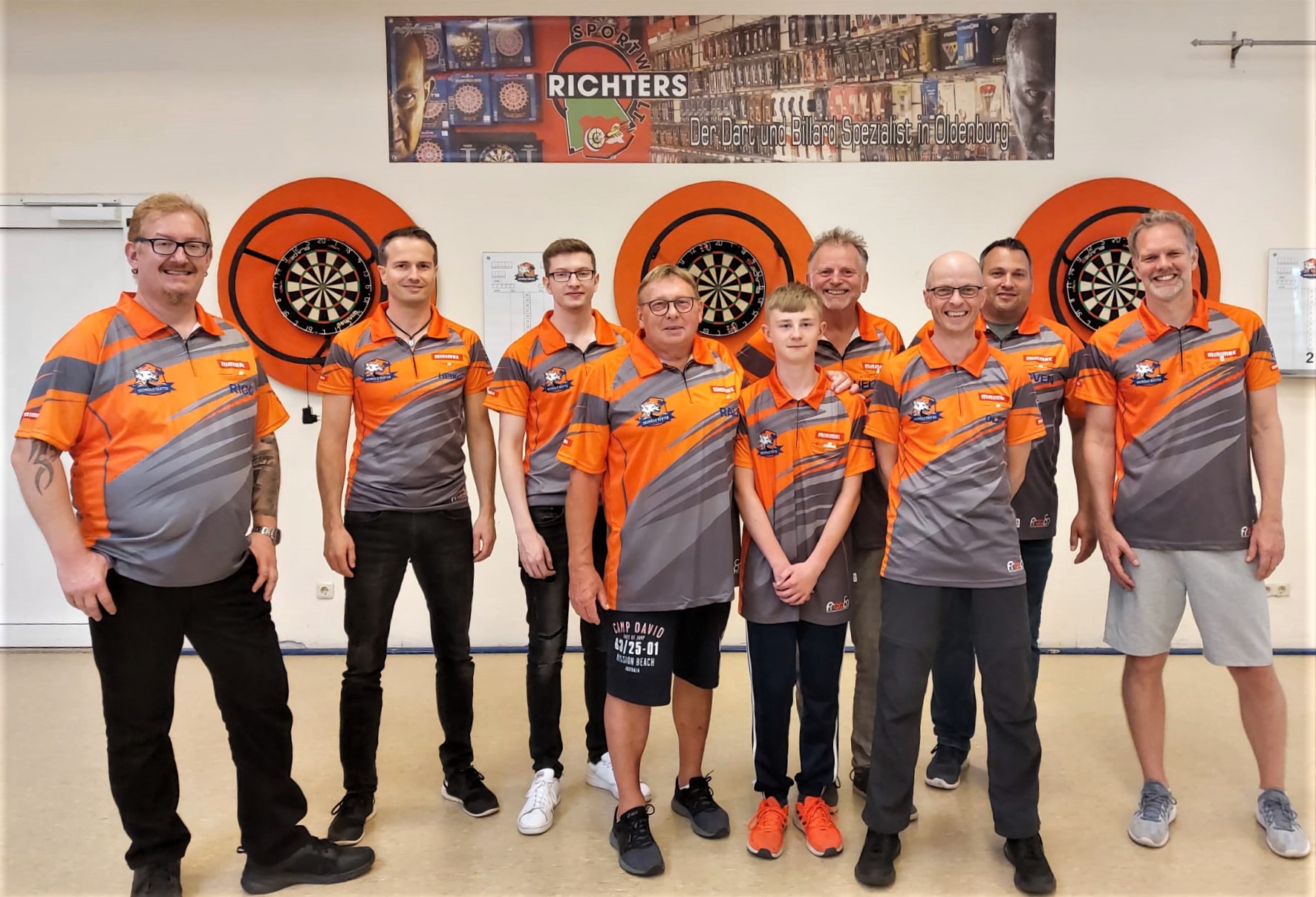Am heutigen 27. August begann für die Dogmills Darter des Hundsmühler TV die neue Saison 2022/23 für die beiden Teams B und C in der Bezirksklasse Mitte mit einem Heimduell im Haus des SpOrts. Eigentlich sollte danach das Spiel der DDA stattfinden, es wurde aber verlegt. Sie haben ihr erstes Heimspiel in der Bezirksliga Nord am 10. September. Die Begegnung DDB gegen DDC (beide Mannschaften wurden neu formiert) sollte auf Augenhöhe stattfinden. DDB ging mit Keno Büsing, Jendrik Höptner, Rico Wolf und Heiko Burkert ins Rennen, DDC mit Theo Sommer, Helmut Klug, Ralf Bremer, Sven Euscher und Olaf Könnecke. Es gab einen klaren 9:3 Sieg mit 33:14 Legs für die zweite Mannschaft. Sie gewannen 6 Einzel relativ klar und drei Doppel. DDC hatte zwei Einzelsiege und einen im Doppel. Insgesamt gingen drei Spiele über 5 Legs. Wir sind gespannt, wie es nun gegen andere und vermeintlich stärkere Gegner weitergeht.